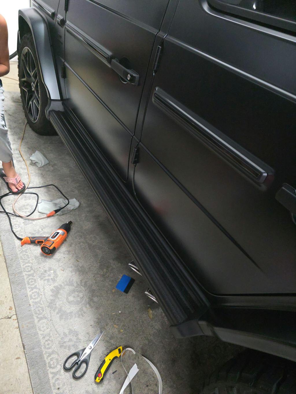 Looks amazing on my full Magno Black G63. This is my 5th G class and I always black out the steps. Historically I have always paid someone to do it at a vinyl shop and this is my first time doing it myself and they turned out perfect. The guy that does my tint and wrap and he was very impressed. Will buy for my next G! The set I got was continous and not halved. I chose to cut each strip out individually so I could peel back the white paper as I went.